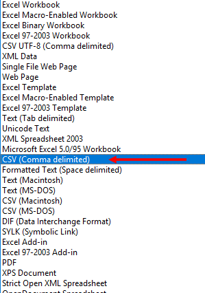 Choose CSV (Comma delimited) from the format dropdown