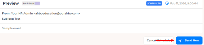 When you finish writing your broadcast message, you can choose to send it right away or schedule it for later. This is helpful when you want to reach employees at the best time, even if you are not available to send it yourself.