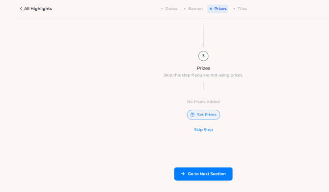 - Optional Step: Remember, prizes are not required. You can run a Highlight without them